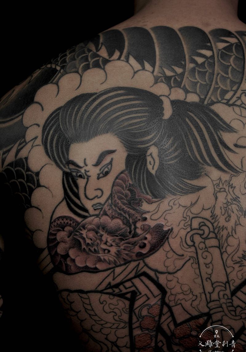 黑灰满背纹身图案