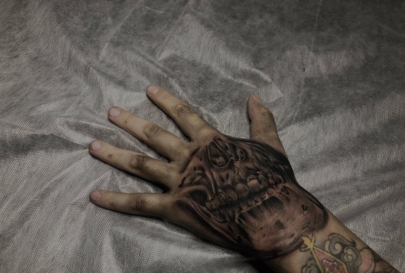 当前位置: 首页 >重庆市纹身店-山河刺青STUDIO纹身图案>骷髅纹身图片_手部纹身图案