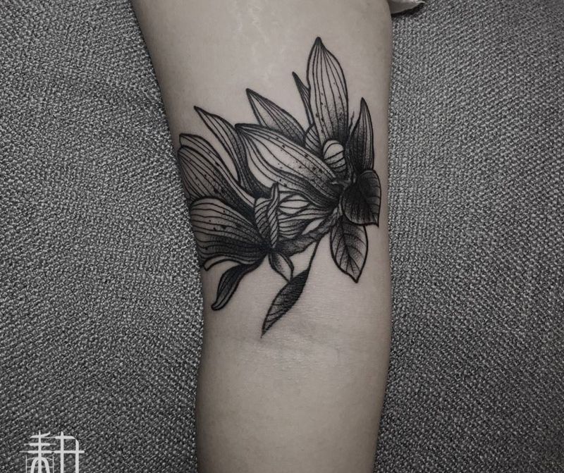 花遮盖英文纹身图片_手臂点刺花原创纹身图案