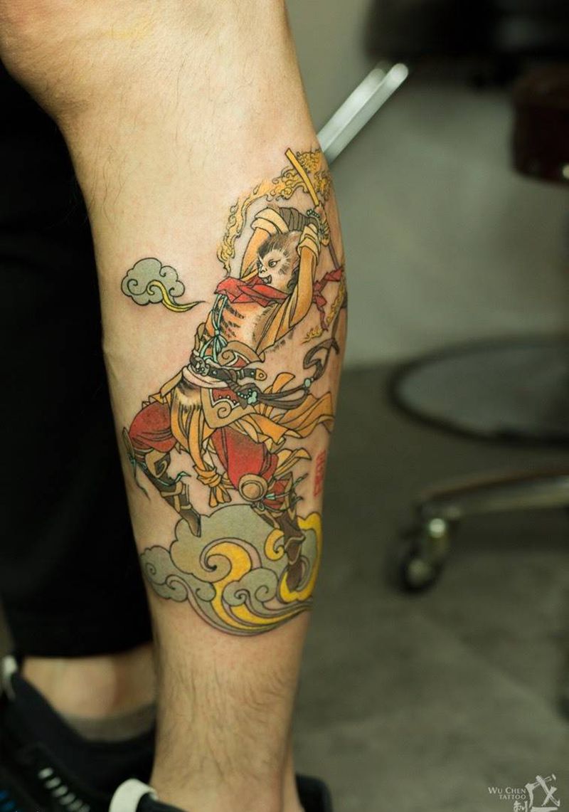 当前位置: 首页 >重庆市纹身店-戊辰刺青纹身图案>悟空传纹身图片_成品腿部传统国画鬼神宗教孙悟空纹身图案