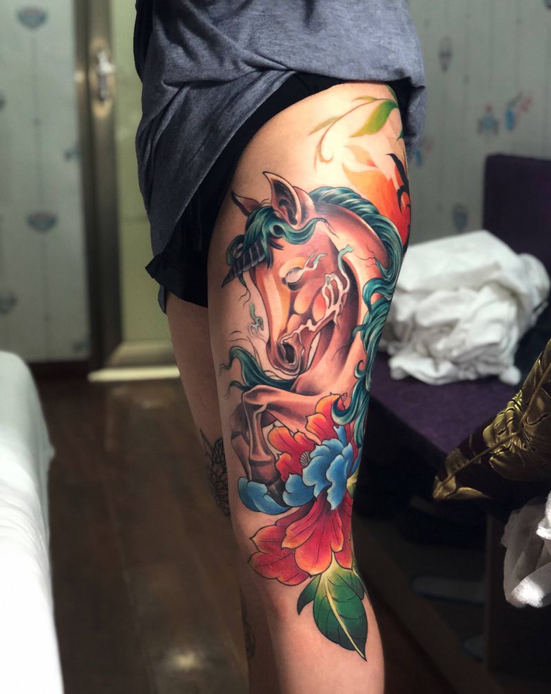 当前位置: 首页 >重庆市纹身店-重庆墨刺青tattoo工作室纹身图案>独角兽 鲨鱼纹身图片_腿部手臂New School纹身图案