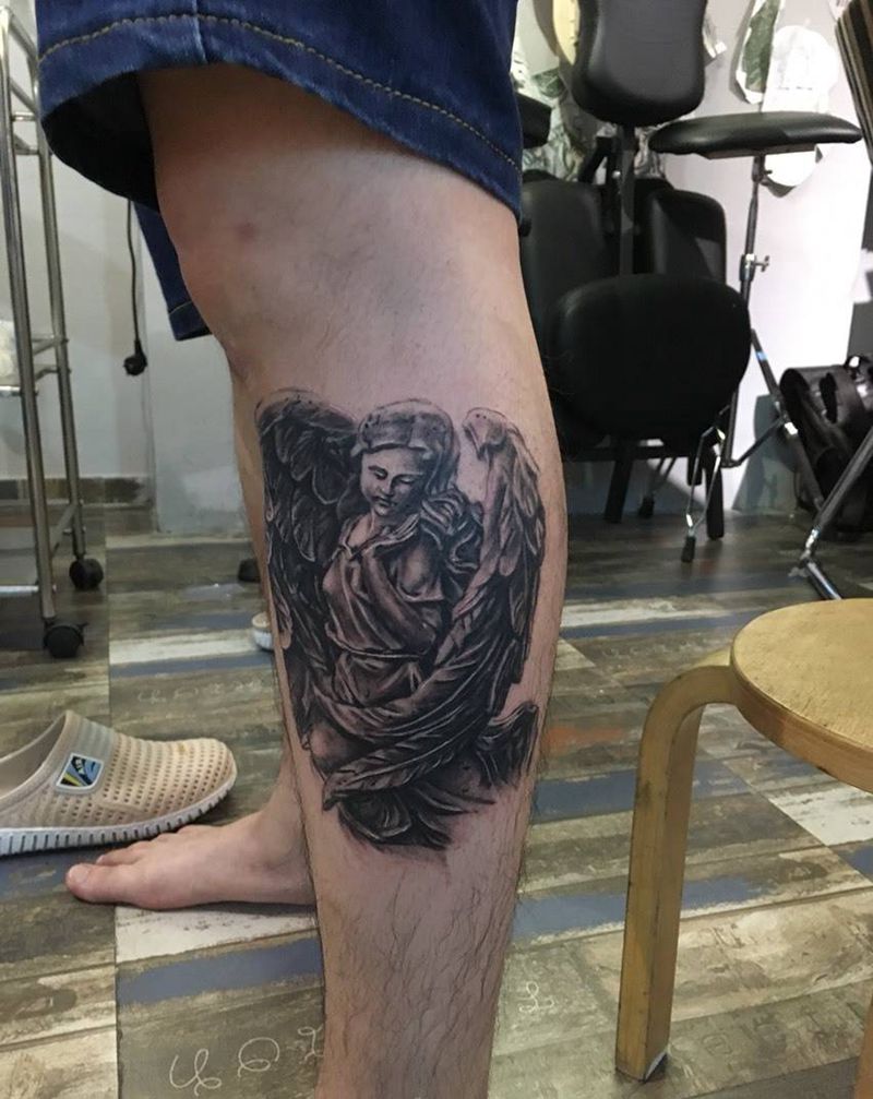 • T网红王老大花腿龙纹身图片_腿部新传统纹身图案
