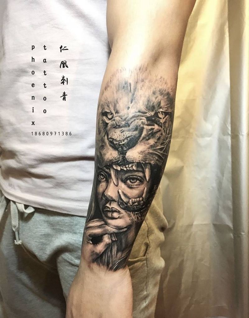 无纹身图片_成品手臂欧美写实肖像人物纹身图案