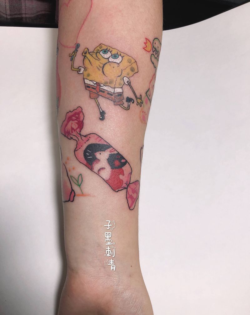 当前位置: 首页 >重庆市纹身店-子墨刺青工作室纹身图案>卡通纹身图片_手部手臂水彩New School纹身图案