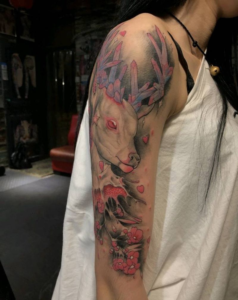 鹿纹身图片_手臂手部欧美写实纹身图案