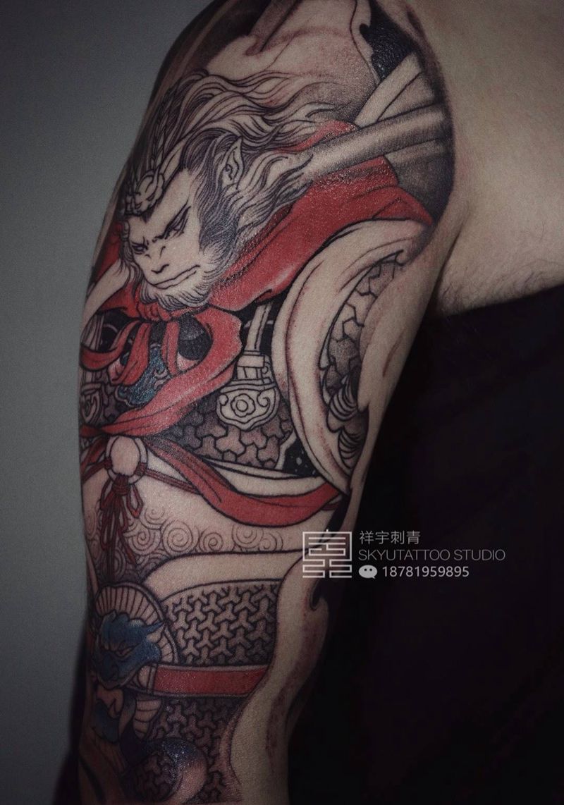 原创齐天大圣纹身图片_手臂新传统齐天大圣纹身图案