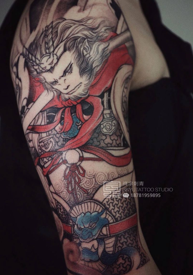 原创齐天大圣纹身图片_手臂新传统齐天大圣纹身图案