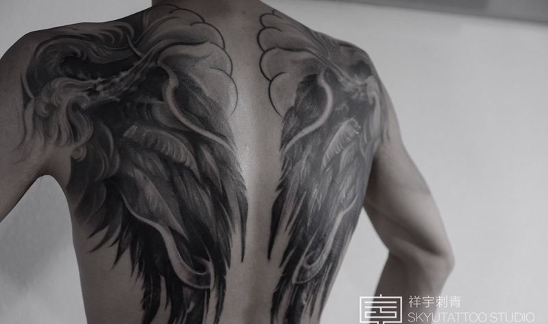 当前位置: 首页 >四川省成都市纹身店-成都祥宇私人定制纹身纹身图案>翅膀未完成纹身图片_背部欧美写实纹身图案