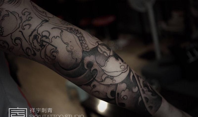 当前位置: 首页 >四川省成都市纹身店-成都祥宇私人定制纹身纹身图案>定制纹身纹身图片_手臂新传统纹身图案