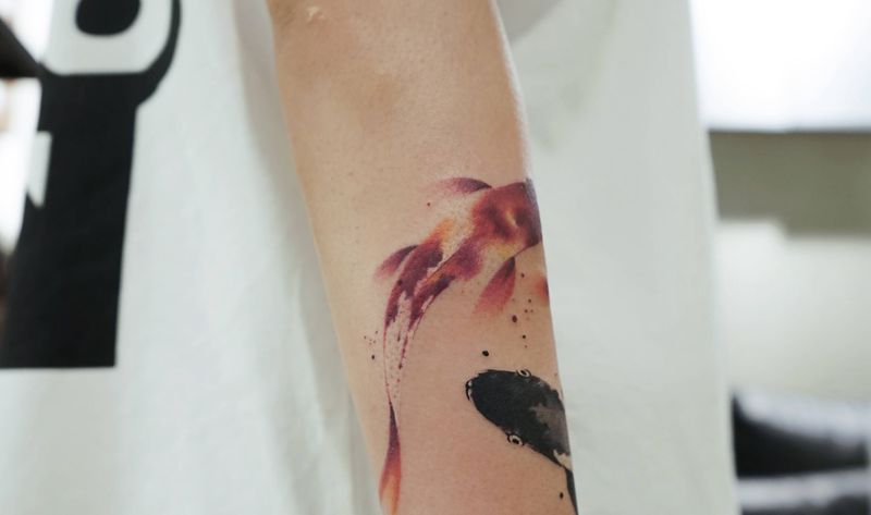 当前位置: 首页 >四川省成都市纹身店-部首刺青纹身图案>鱼纹身图片_手臂手部水墨水彩纹身图案