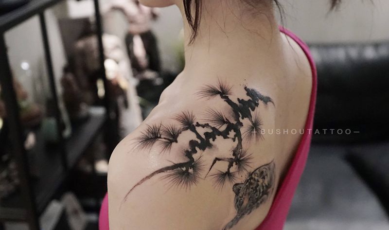 黑灰满背纹身图案