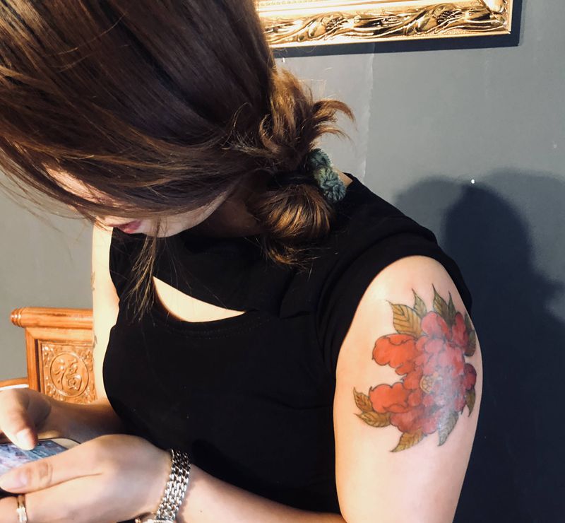 当前位置: 首页 >重庆市纹身店-独品•TATTOO•STUDIO纹身图案>牡丹纹身图片_手臂手部新传统纹身图案