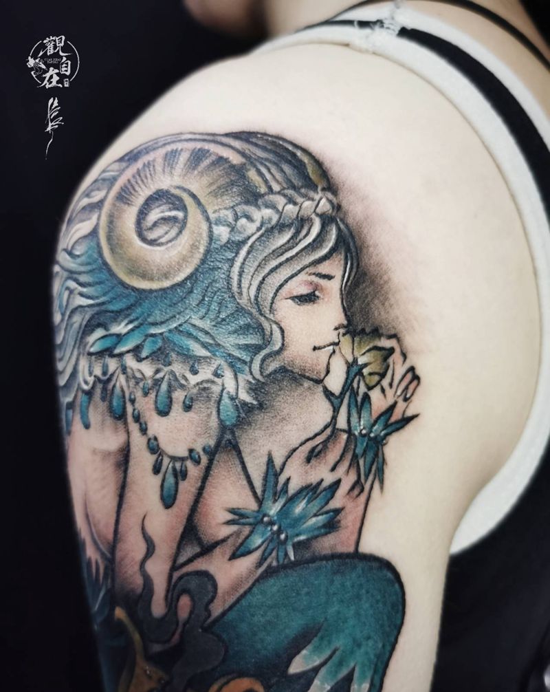 • 纹身吧推荐的披肩图腾半胛纹身图案作品展示