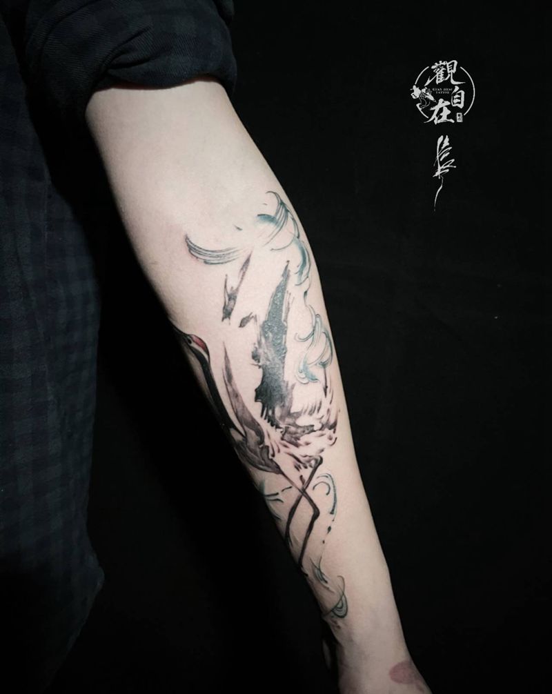 当前位置: 首页 >四川省成都市纹身店-观自在刺青纹身图案>仙鹤纹身图片_水墨纹身图案