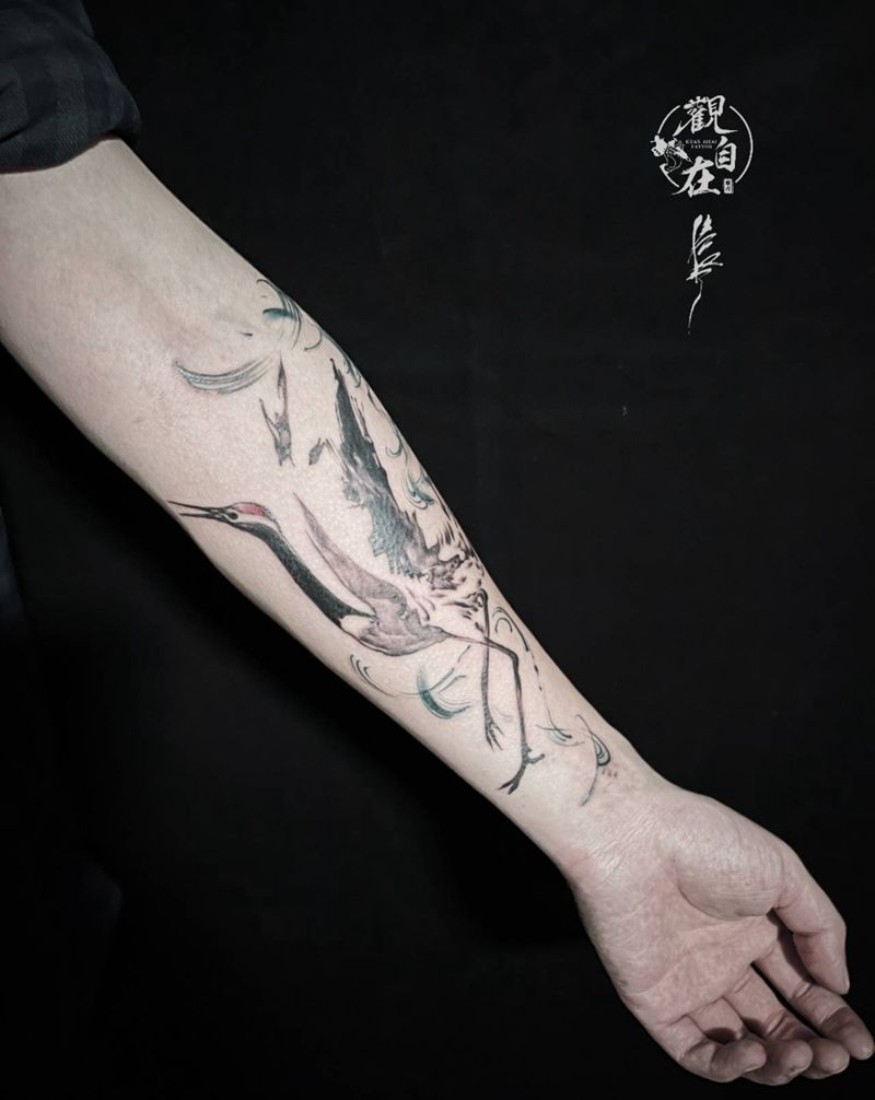 当前位置: 首页 >四川省成都市纹身店-观自在刺青纹身图案>仙鹤纹身图片_水墨纹身图案