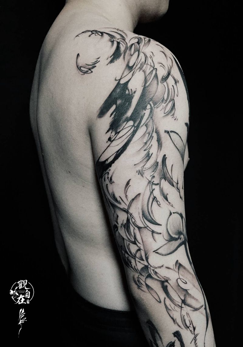 当前位置: 首页 >四川省成都市纹身店-观自在刺青纹身图案>水墨花鸟花臂纹身图片_手臂水墨纹身图案