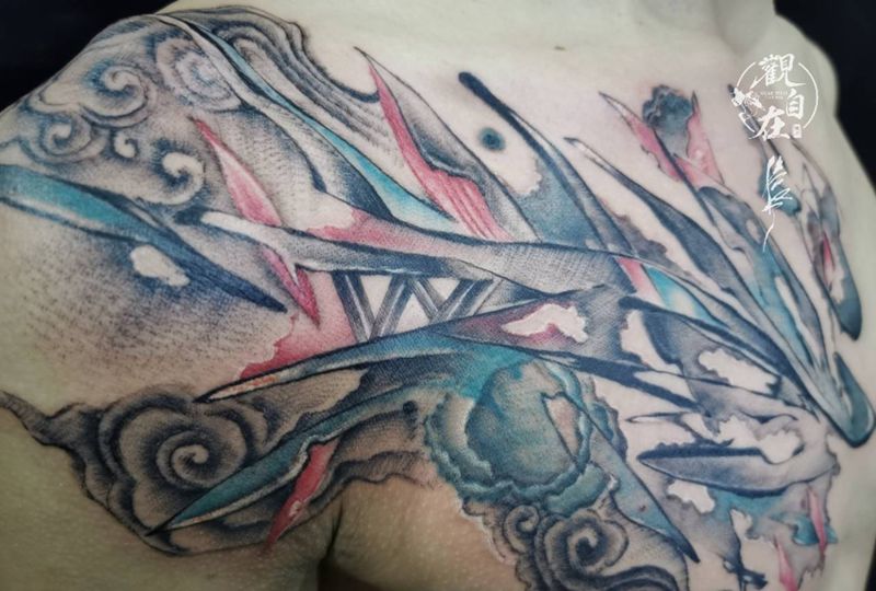 • 纹身吧推荐的披肩图腾半胛纹身图案作品展示