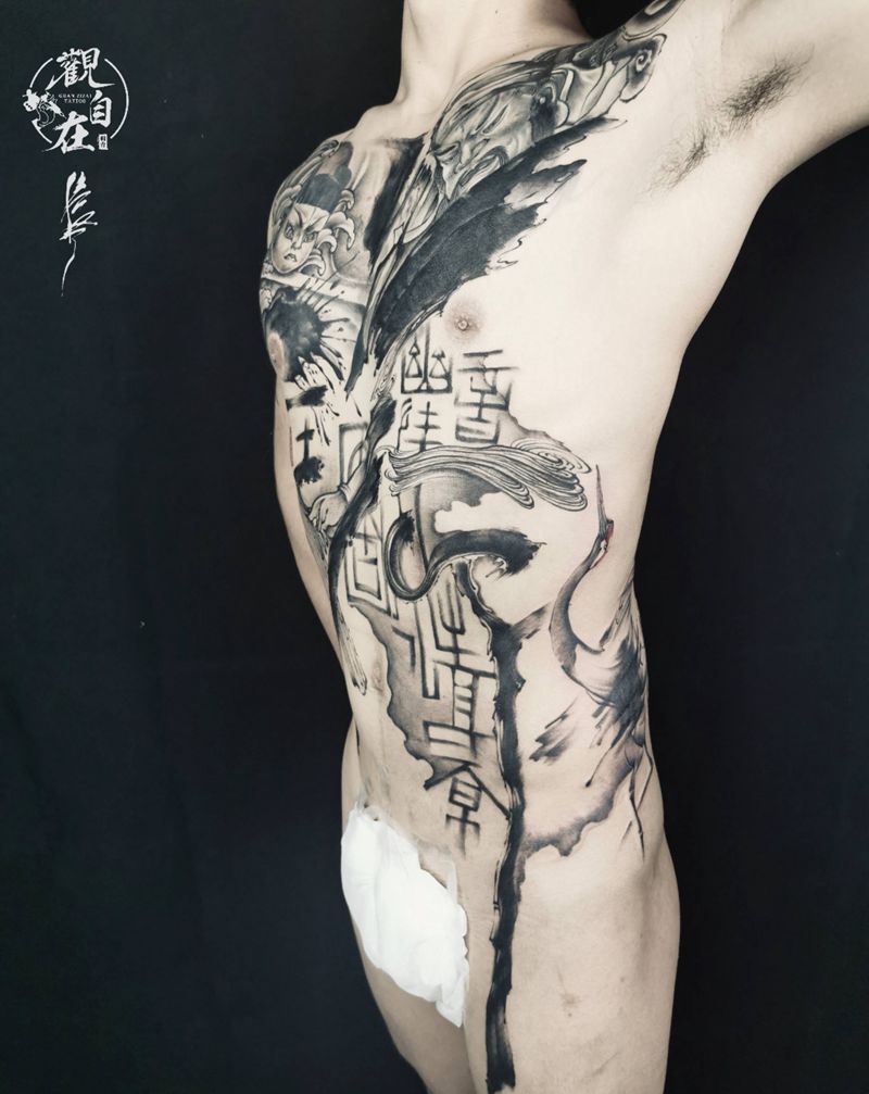 当前位置: 首页 >四川省成都市纹身店-观自在刺青纹身图案>修改作品【琴鹤古香纹身图片_腹部胸部水墨纹身图案