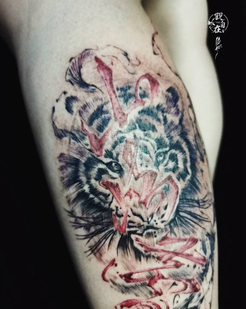 • T网红王老大花腿龙纹身图片_腿部新传统纹身图案
