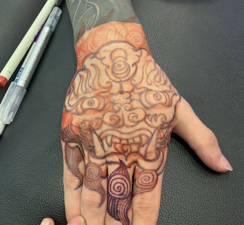 当前位置: 首页 >重庆市纹身店-独品•TATTOO•STUDIO纹身图案>手背大黑天纹身图片_手部新传统神话人物纹身图案