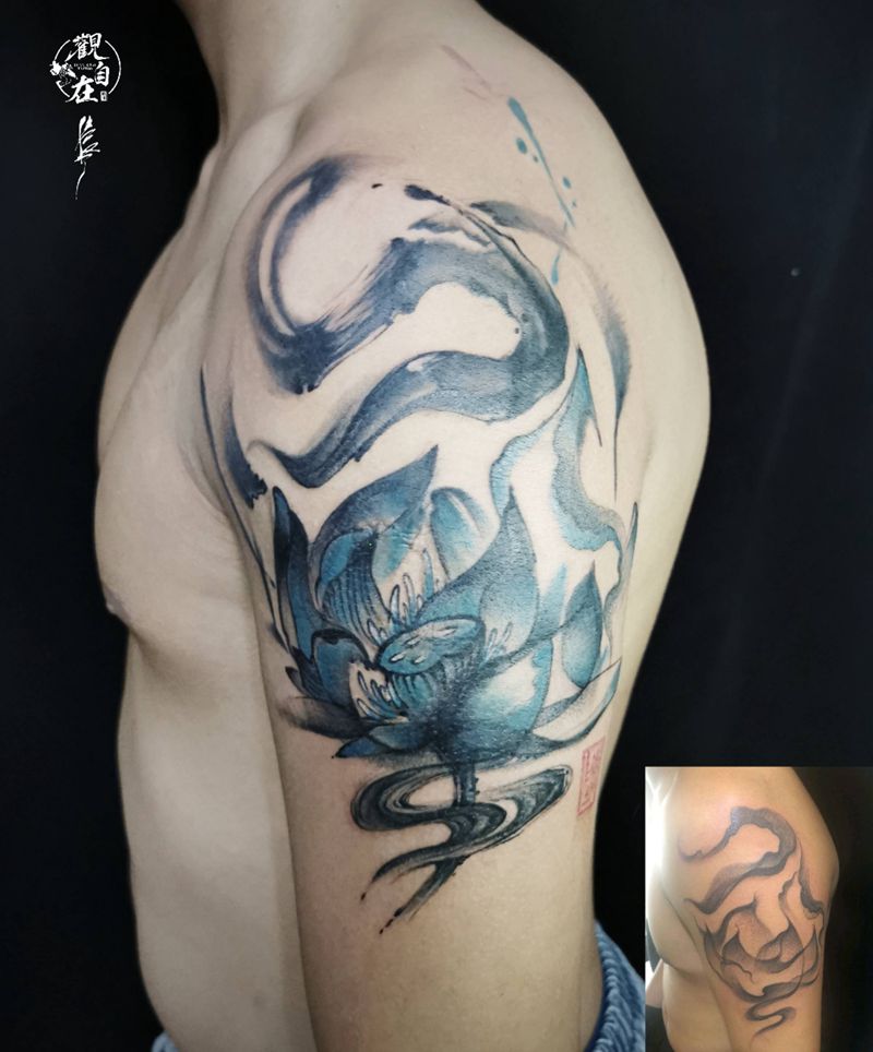 一组15张莲花纹身手