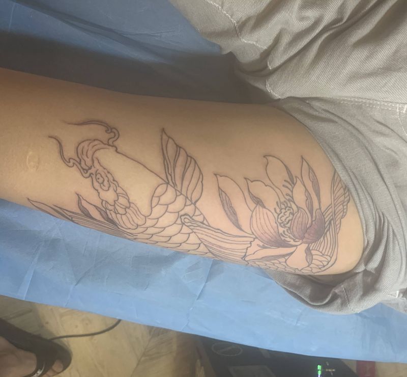当前位置: 首页 >重庆市纹身店-独品•TATTOO•STUDIO纹身图案>大腿鲤鱼未完纹身图片_腿部新传统纹身图案