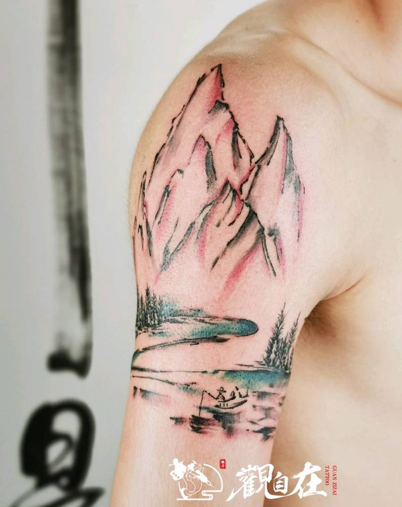 当前位置: 首页 >四川省成都市纹身店-观自在刺青纹身图案>旧图遮盖纹身图片_手臂山水纹身图案
