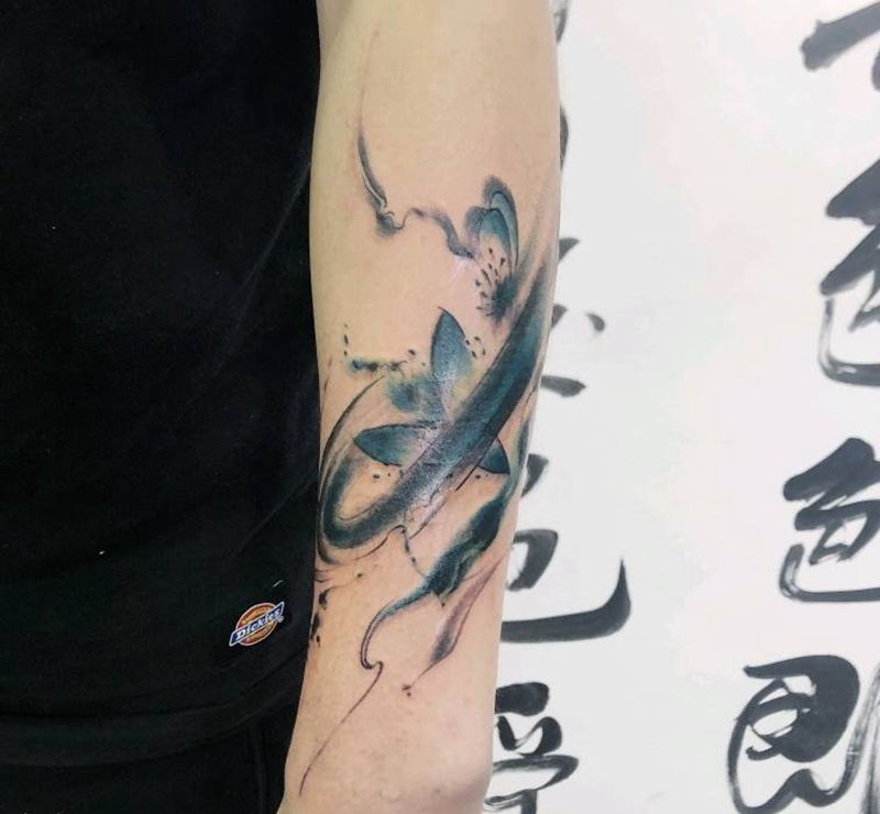 水墨遮盖纹身图片_手臂水墨纹身图案