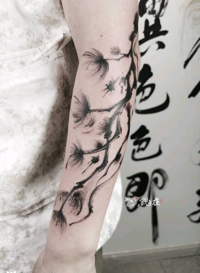当前位置: 首页 >四川省成都市纹身店-观自在刺青纹身图案>水墨松树纹身图片_手臂水墨松树纹身图案