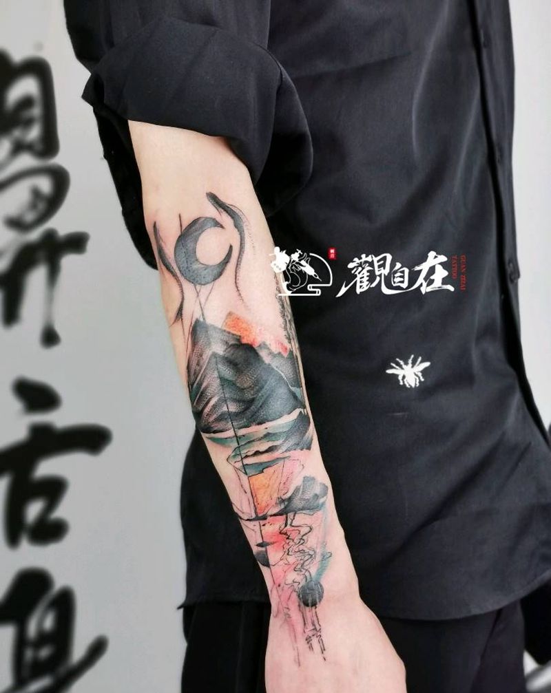 当前位置: 首页 >四川省成都市纹身店-观自在刺青纹身图案>抽象水墨纹身图片_手臂水墨纹身图案