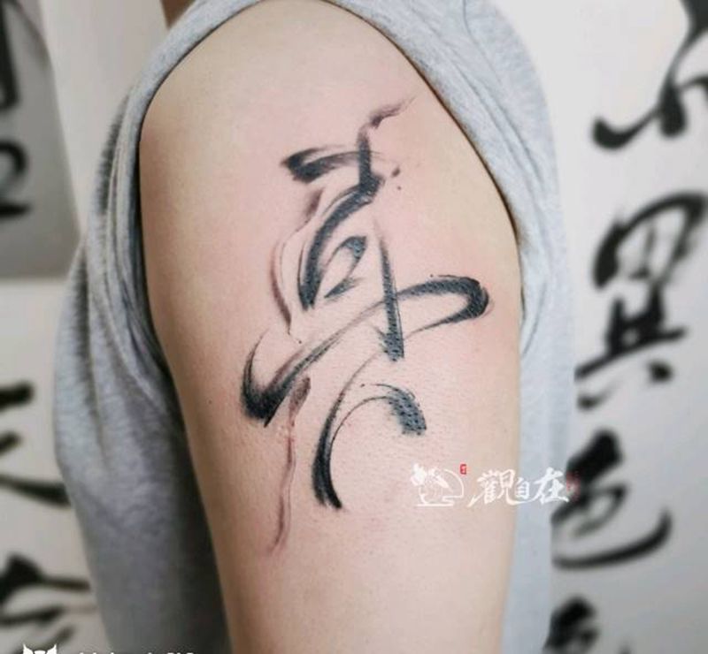 当前位置: 首页 >四川省成都市纹身店-观自在刺青纹身图案>活得真实纹身图片_肩部手臂水墨真纹身图案