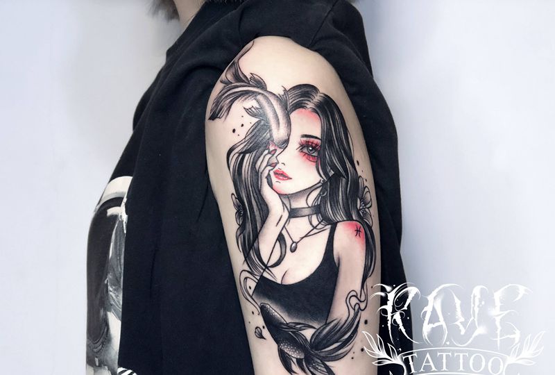当前位置: 首页 >四川省成都市纹身店-Raye Tattoo纹身图案>双鱼姬纹身图片_手臂Old School双鱼座纹身图案