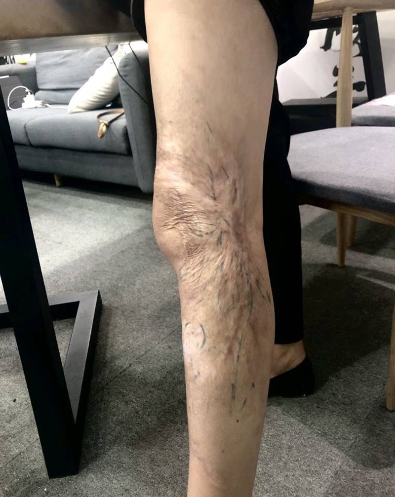 • T网红王老大花腿龙纹身图片_腿部新传统纹身图案