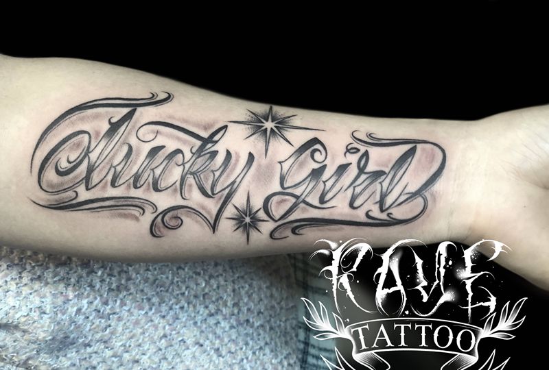 当前位置: 首页 >四川省成都市纹身店-Raye Tattoo纹身图案>Lucky Girl纹身图片_手臂花体字Lucky girl纹身图案