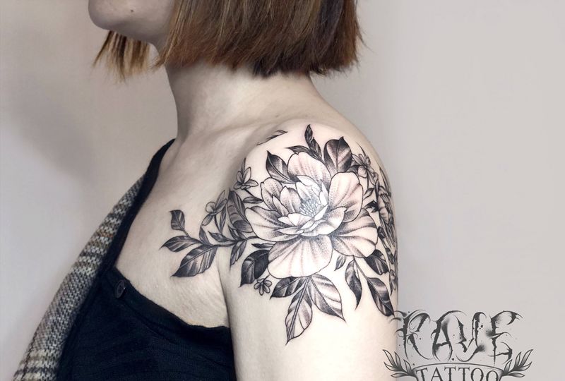 当前位置: 首页 >四川省成都市纹身店-Raye Tattoo纹身图案>肩膀花花纹身图片_手臂肩部点刺素花纹身图案