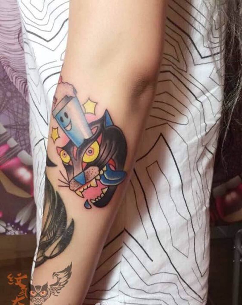 当前位置: 首页 >四川省成都市纹身店-Raye Tattoo纹身图案>New school黑豹纹身图片_成品手臂欧美动物纹身图案