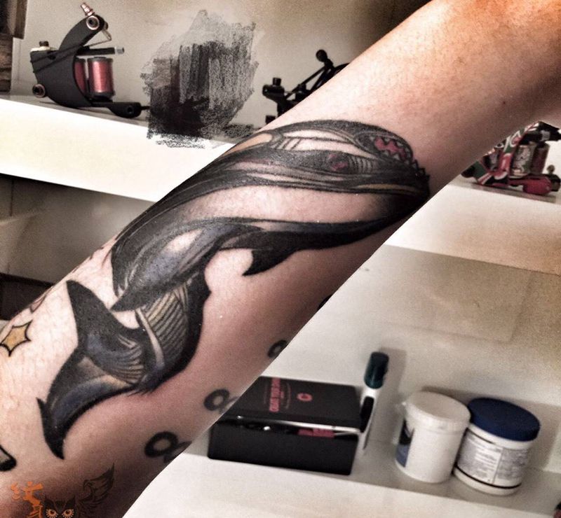 当前位置: 首页 >四川省成都市纹身店-Raye Tattoo纹身图案>New School鲨鱼纹身图片_成品手臂欧美动物纹身图案
