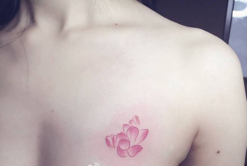 今日小作,见证友谊的闺蜜纹身。纹身图片_成品胸部清新植物国画工作生活纹身图案