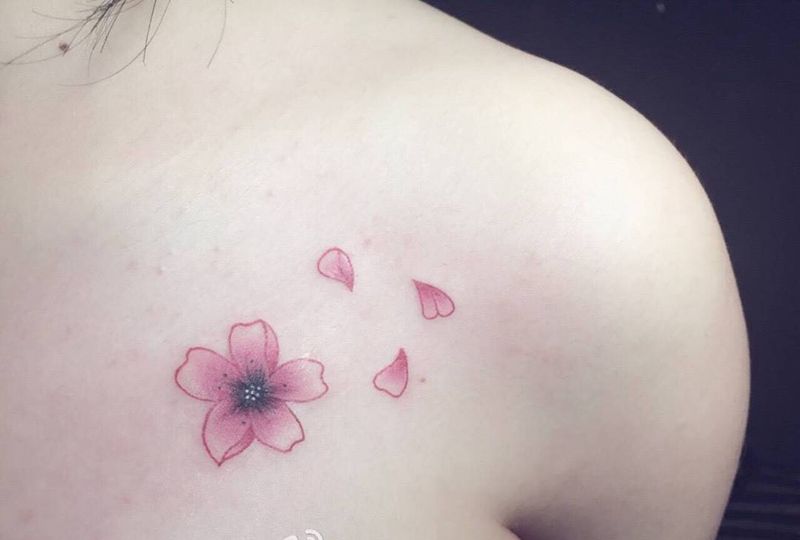 今日小作,见证友谊的闺蜜纹身。纹身图片_成品胸部清新植物国画工作生活纹身图案