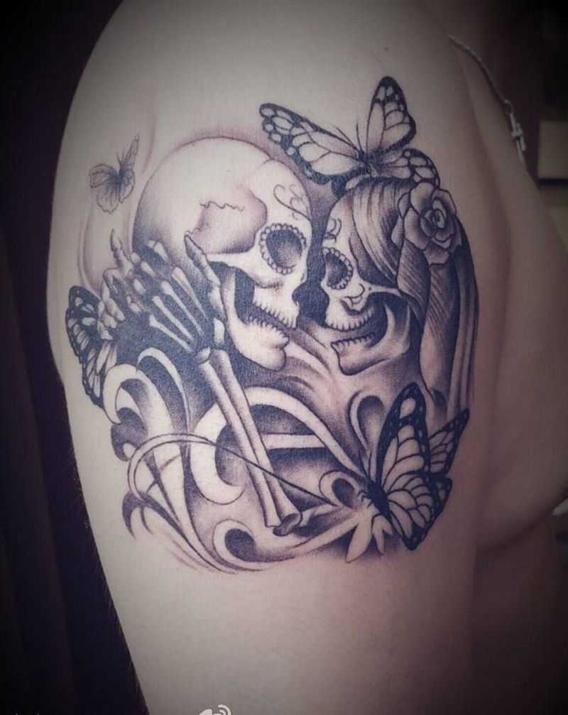 当前位置: 首页 >四川省成都市纹身店-Raye Tattoo纹身图案>欧美骷髅纹身图片_成品手臂欧美清新工作人物纹身图案