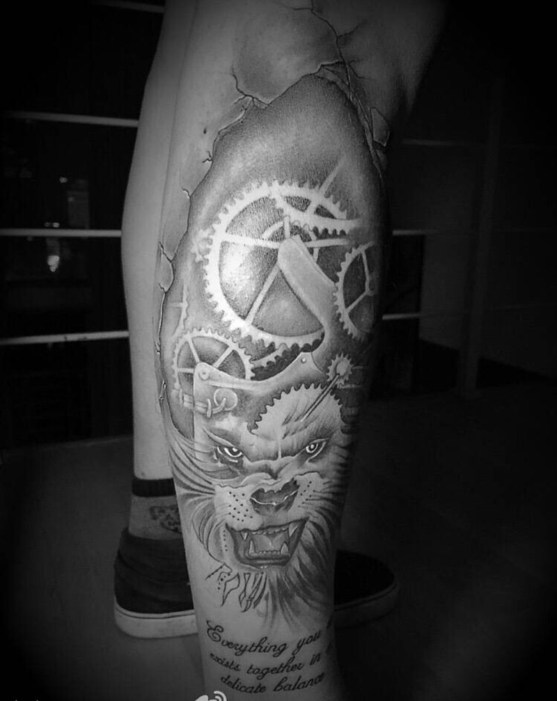 机械狮子纹身图片_成品欧美动物清新原创工作纹身图案