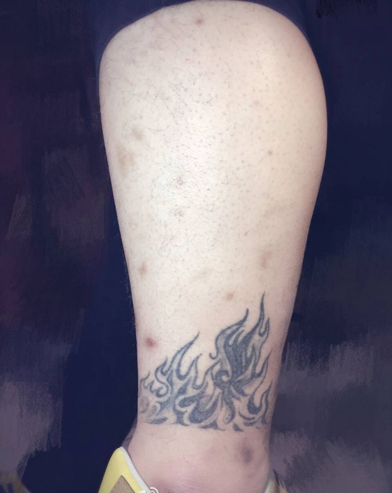 • T包小腿吹火男+阿多福纹身图片_腿部老传统新传统吹火男阿