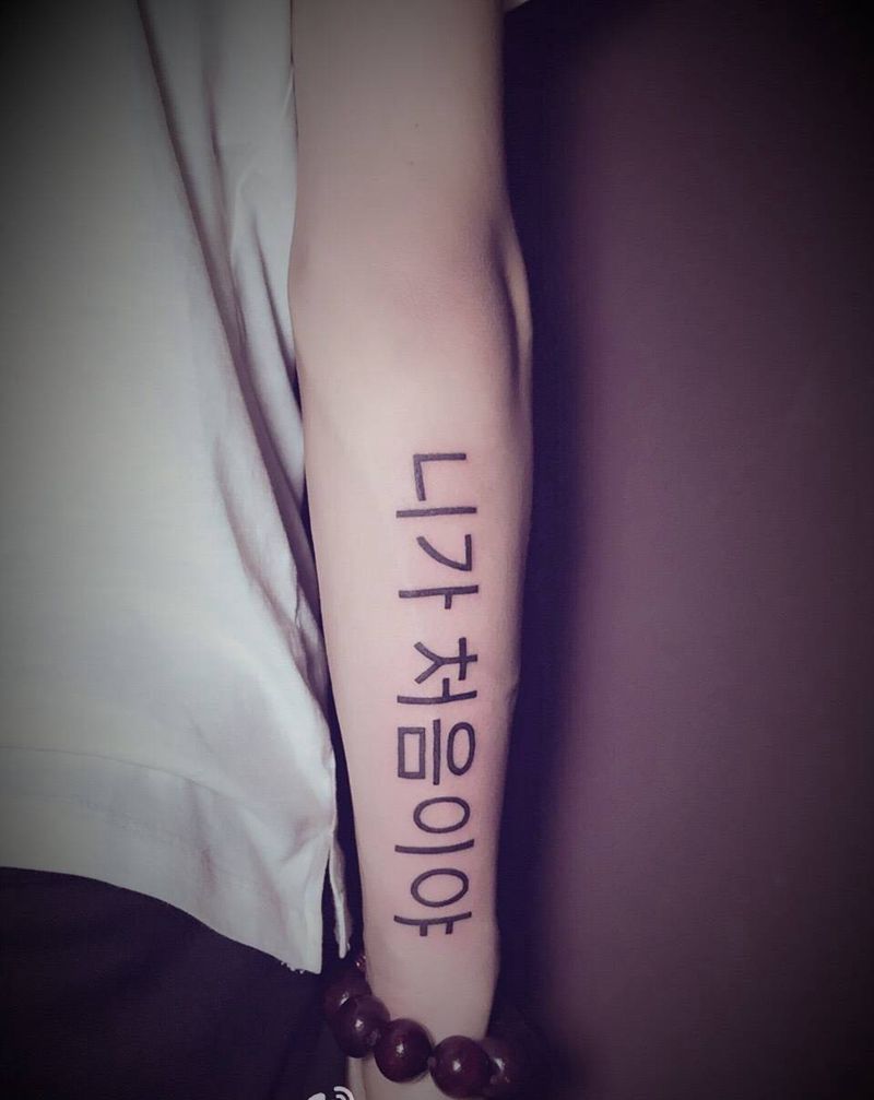 当前位置: 首页 >四川省成都市纹身店-Raye Tattoo纹身图案>韩文纹身图片_成品手臂欧美清新字符图腾工作纹身图案