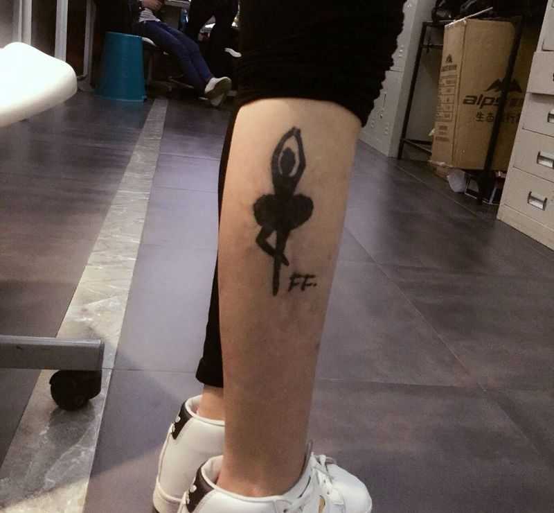 芭蕾娃娃纹身图片_成品手稿腿部欧美清新原创纹身图案