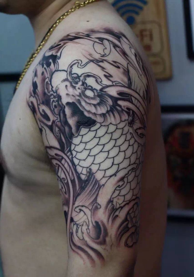 当前位置: 首页 >四川省成都市纹身店-番鬼刺青纹身图案>大臂鱼 黑灰细节纹身图片