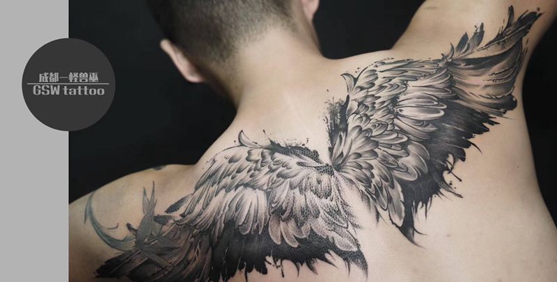 黑灰满背纹身图案
