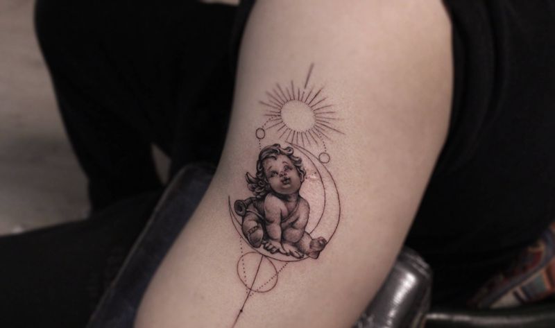 当前位置: 首页 >四川省成都市纹身店-怪兽刺青纹身图案>天使纹身图片_手臂欧美写实单针纹身图案