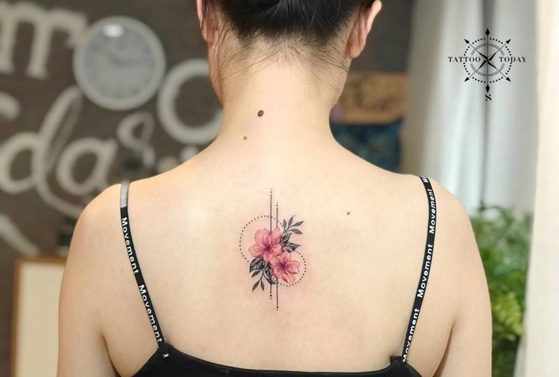 当前位置: 首页 >四川省成都市纹身店-TattooToday纹身图案>一花双生纹身图片_背部几何原创花纹身图案