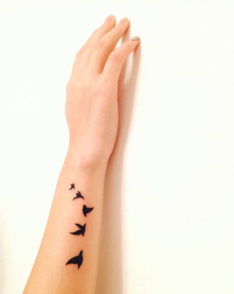 飞鸟初纹纹身图片_成品手臂清新纹身图案