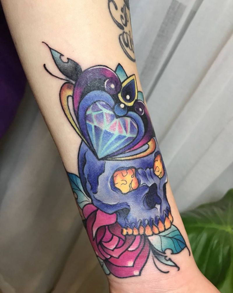 当前位置: 首页 >四川省成都市纹身店-TattooToday纹身图案>骷髅玫瑰遮盖纹身图片_成品手臂清新欧美鬼神植物宗教原创修改纹身图案